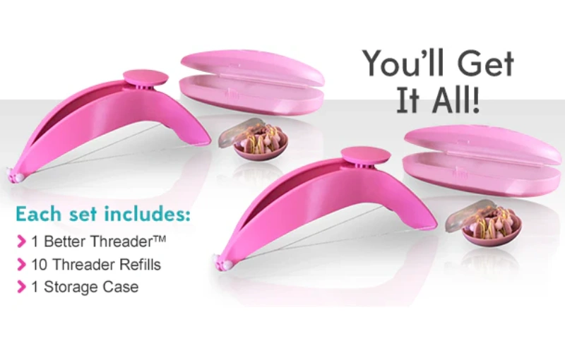 The Better Threader is uniquely designed to quickly remove a row of hairs from the root in a quick and effortless movement.