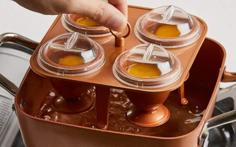 Now you can cook your hard boiled eggs without the shell! Forget about peeling your eggs, Copper Chef Eggs are the instant way to cook eggs, without the shell! Perfect for hard-boiled eggs, poached eggs, omelettes, flan, creme brulee and cheesecake bites, the Copper Chef Copper Eggs XL is a must-have in every kitchen.