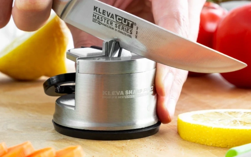 Stop struggling with blunt knives in your drawer! The unique, patented Kleva Sharp® Pro uses tungsten carbide technology to extend the life of your knives.