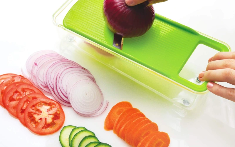 Its smart, space-saving design allows you to slice directly into the built-in storage container, keeping your kitchen clean and mess-free. When finished, all blades store neatly inside the container for safe, organised storage. Perfect for everyday cooking, the Kleva Swifty Slicer saves time, space, and effort in the kitchen.
