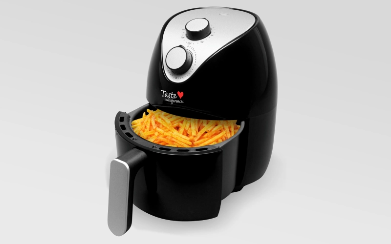 The Taste the Difference Air Fryer uses hot turbo air to grill, roast, bake, defrost and more, all without adding extra fats or oils.